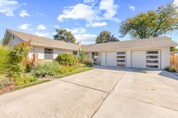 Tucked on a quiet street, this mid-century ranch welcomes you with a wide driveway, fresh modern garage doors, and lush, established landscaping. Inside, the home opens to light-filled living with original character intact and spaces that flex with the seasons of life.