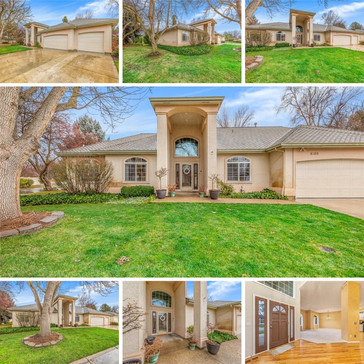 Welcome to the Peaceful Retreat you've been waiting for. Tucked within a private, gated community of just 23 homes; privacy, beauty & ease of living take center stage within a short stroll to the Boise River Greenbelt. The first time ever on the market, this home is architecturally striking from the exterior, thoughtfully carried throughout, inviting you to slow down and enjoy its serene surroundings. Inside, soaring 12' vaulted ceilings & expansive floor-to-wall windows bathe the living spaces in soft natural light, creating an atmosphere that feels both open and calming. Rich 1" hardwood floors flow through most of the home, adding warmth & timeless charm. Step outside to a tranquil backdrop of mature landscaping & the peaceful sounds of the gently meandering community creek in the backyard; an ever-present reminder of nature’s quiet rhythm. The 15x10 east-facing pergola patio is perfect for morning coffee, afternoon reading, or peaceful evenings surrounded by birdsong & cool breezes. Modern amenities include a 2020 roof & an exceptionally large 24x30 three-car garage, offering generous space for vehicles, storage, or hobbies. Located just moments from the Boise River Greenbelt yet wonderfully removed from the bustle, this home offers refined comfort, privacy, and a lifestyle centered on relaxation & ease.